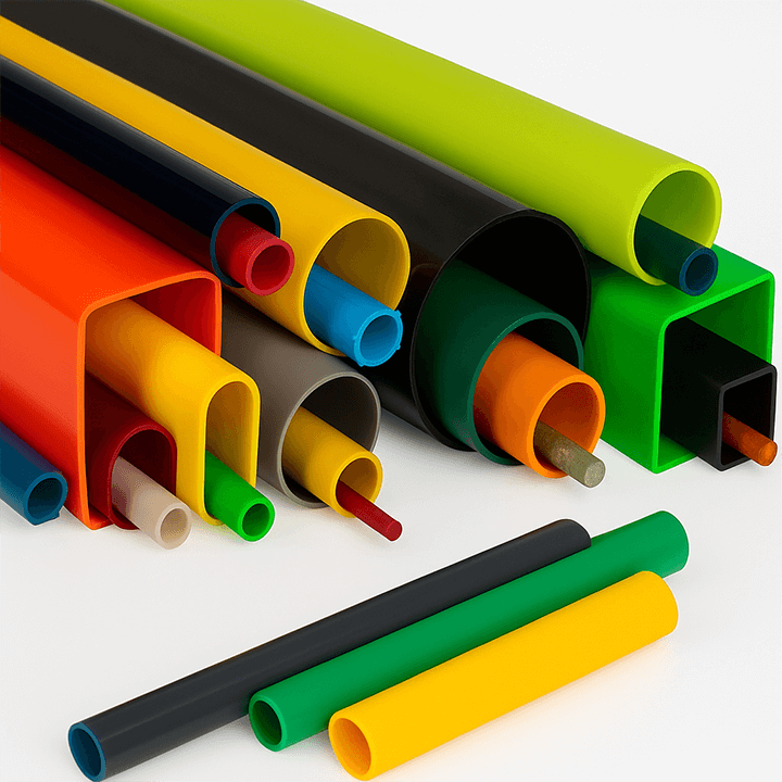 Common materials include PVC, ABS, and various polyethylenes for plastics, and aluminum for metals. For plastic, the best material depends on the desired properties like temperature resistance, chemical exposure and strength, which can be enhanced with additives like fiberglass or flame retardants.